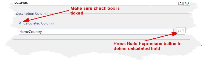 If you wish to use a calculated column to populate the description column, make sure the Calculated Column check box is ticked, and press the Build Expression button to open the Calculated Column dialog box to define the expression for your description column.
