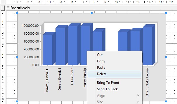 Select the chart in the sections panel, then either press the delete key, or press the right mouse button and select delete from the drop down menu. |