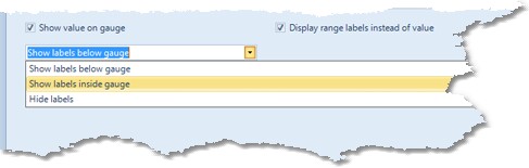 Next, if your gauge object supports labels, choose whether you want the labels for the gauge shown inside the gauge, outside the gauge or not shown at all.