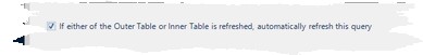 If either the Outer or Inner Table Data is set to another query in then a checkbox is enabled that allows this query to be refreshed if an underlying query is refreshed,